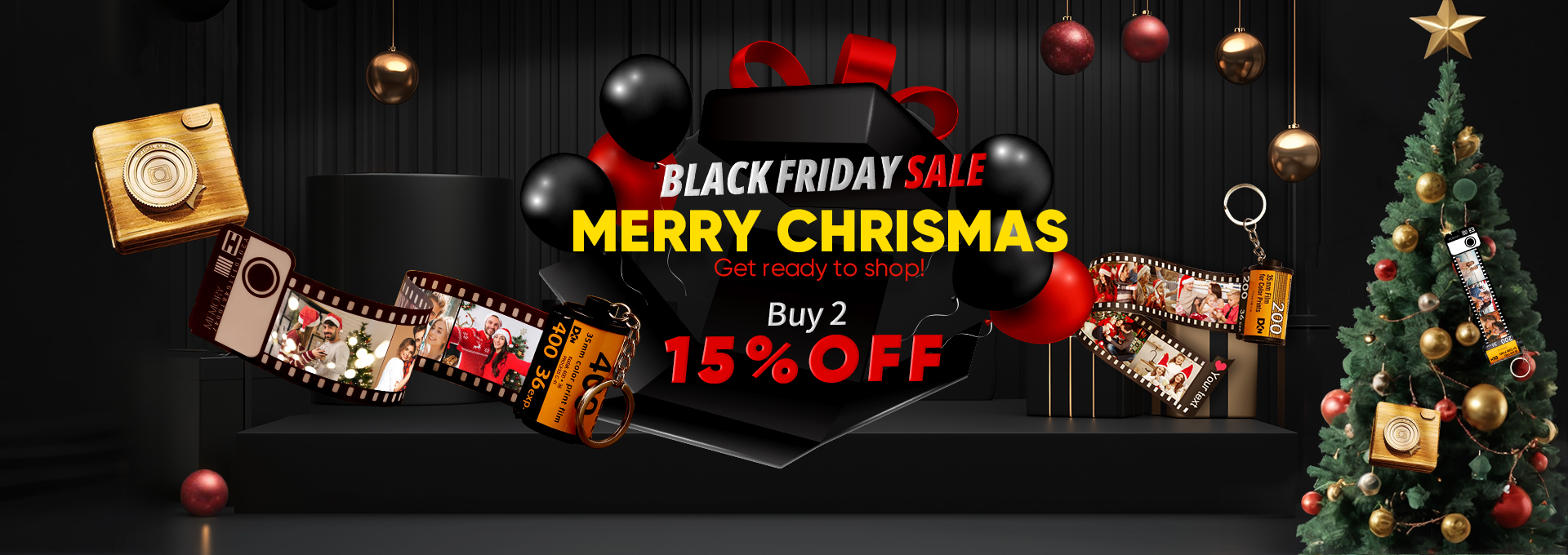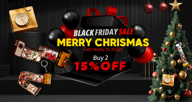 Custom Photo Film Keychain Merry Chrismas Gift for Couple -