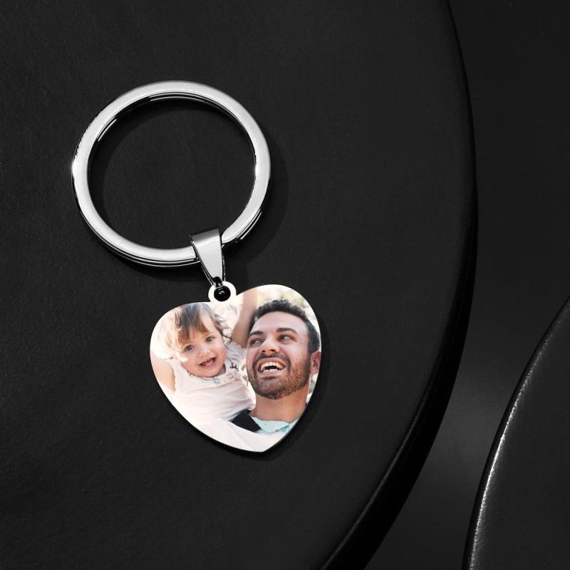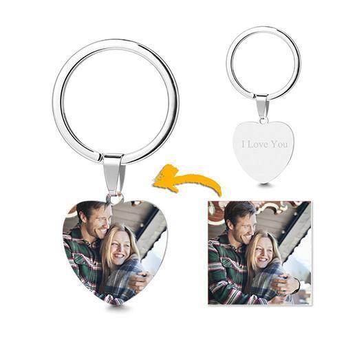 Christmas Gift Heart Tag Photo Key Chain With Engraving Stainless Steel