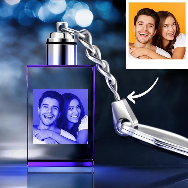 Custom Crystal Rectangle Shape Couple Photo Keychain Sweet