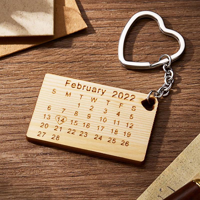 Custom Calendar Keychain Wooden Keychain Customized Save the Date Keychain Gift for Lover