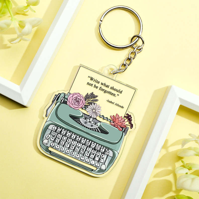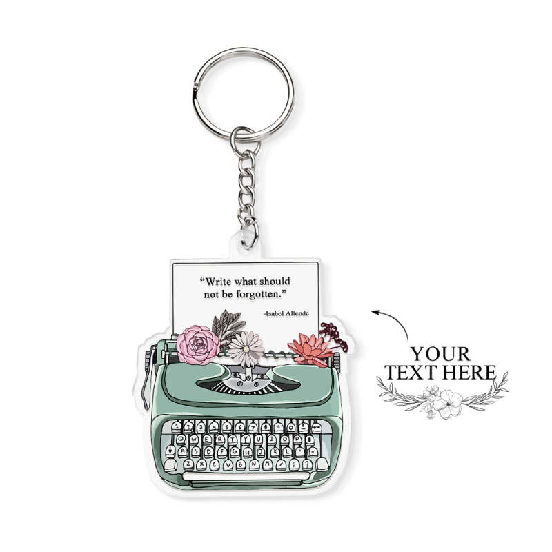Custom Engraved Keychain Green Typewriter Creative Acrylic Gifts