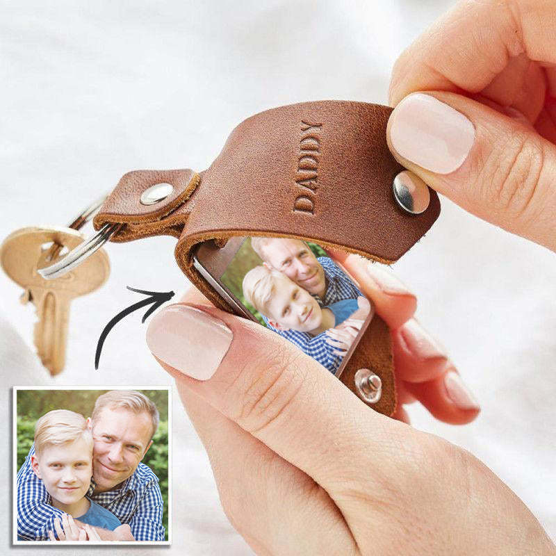 Custom Engraved Photo Keyring With Leather Case - Valentines Day Gifts