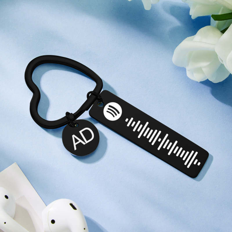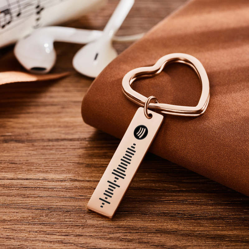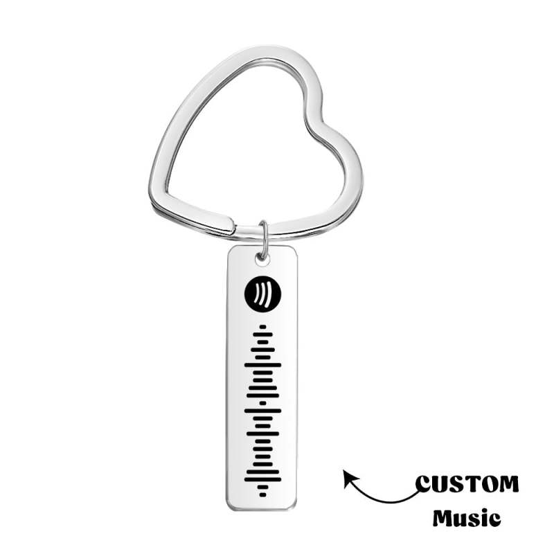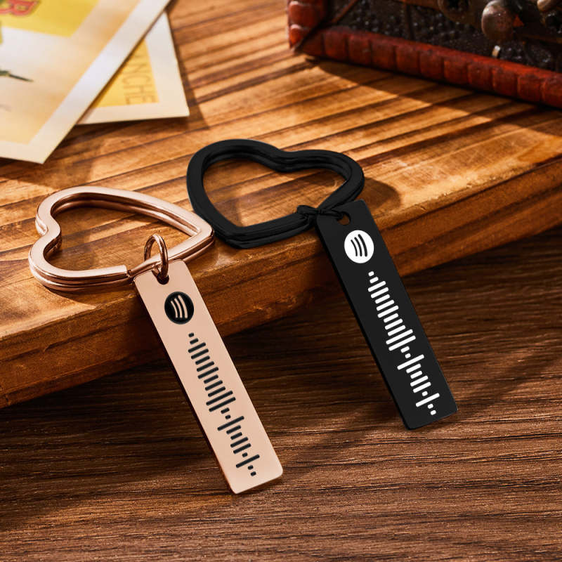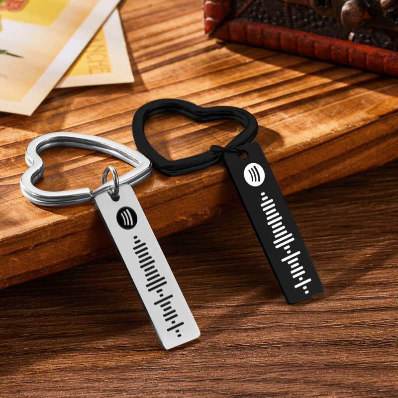 Custom Engraved Spotify Code Keychain Metal Keychain with Heart-shaped Keychain Creative Gift