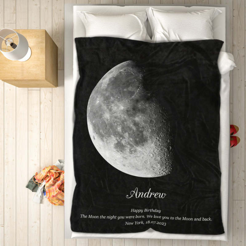 Custom Moon Phase Blanket Personalized Names Birthday Gift