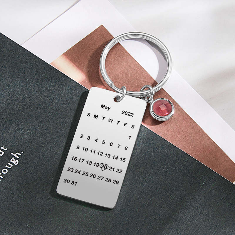 Custom Name Calendar Birthstone Keychain Personalized Date Birthday Gifts