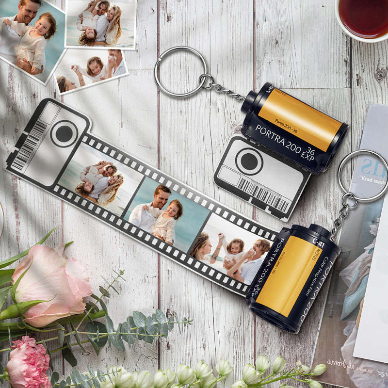 Custom Personal Film Roll Keychain with Pictures Gift for Family