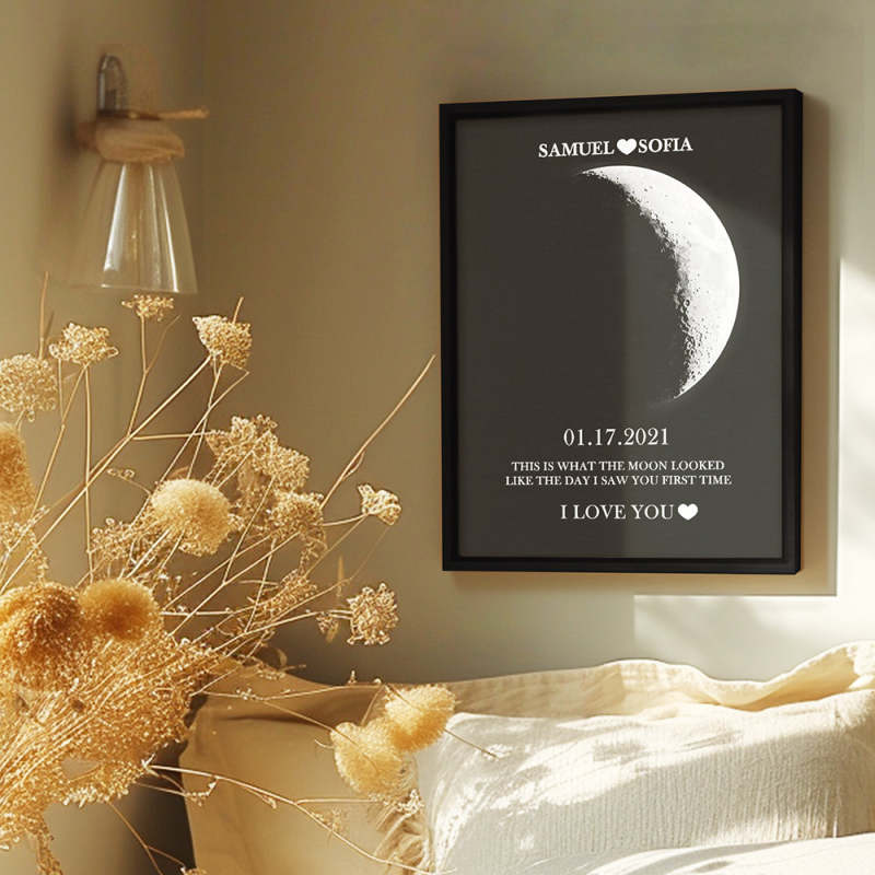 Custom Silver Moon Phase and Names Wooden Frame with Your Text Custom Couple Art Frame Best Valentine's Day Gift