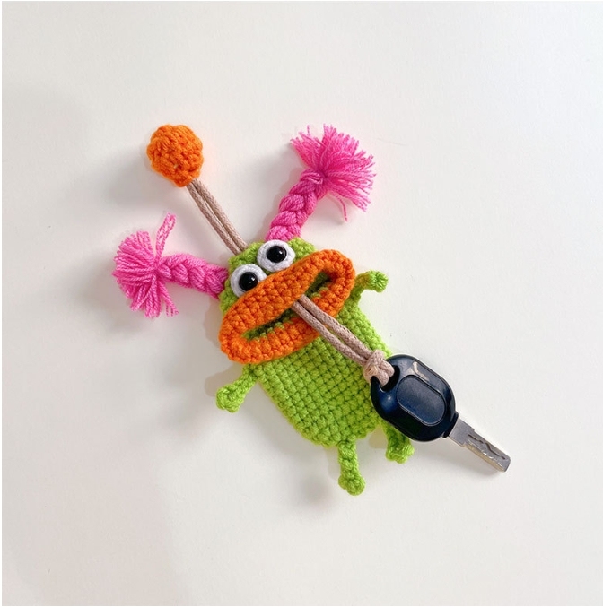 Cute Sausage Mouth Car Key Cover Handmade Crochet Keychain Quirky Yarn Car Accessory Novelty Car Key Holder