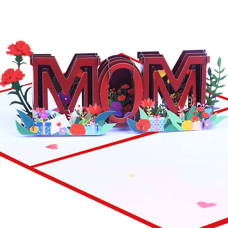 Mother's Day 3D Three-dimensional Greeting Card Hollow MOM Greeting Card Holiday Blessing Folding Paper Carving Card