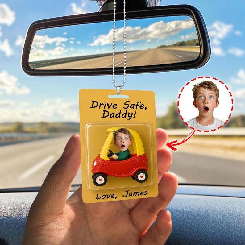 Personalized Face Photo Acrylic Car Hanger, Custom Name And Text Drive Safe Daddy Car Ornament, New Dad Gift, Father's Day Gift For Him