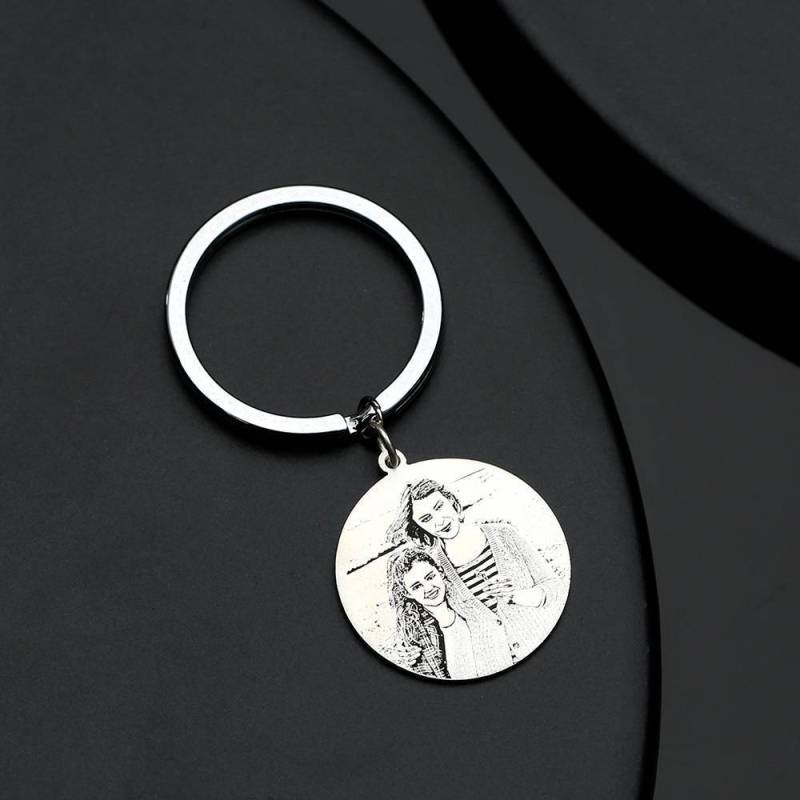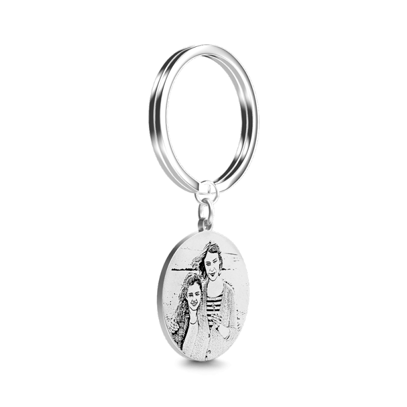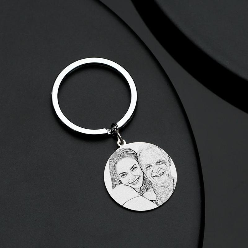 Round Photo Engraved Tag Key Chain Stainless Steel