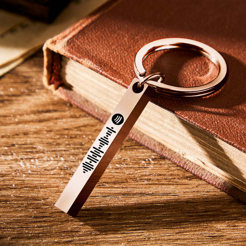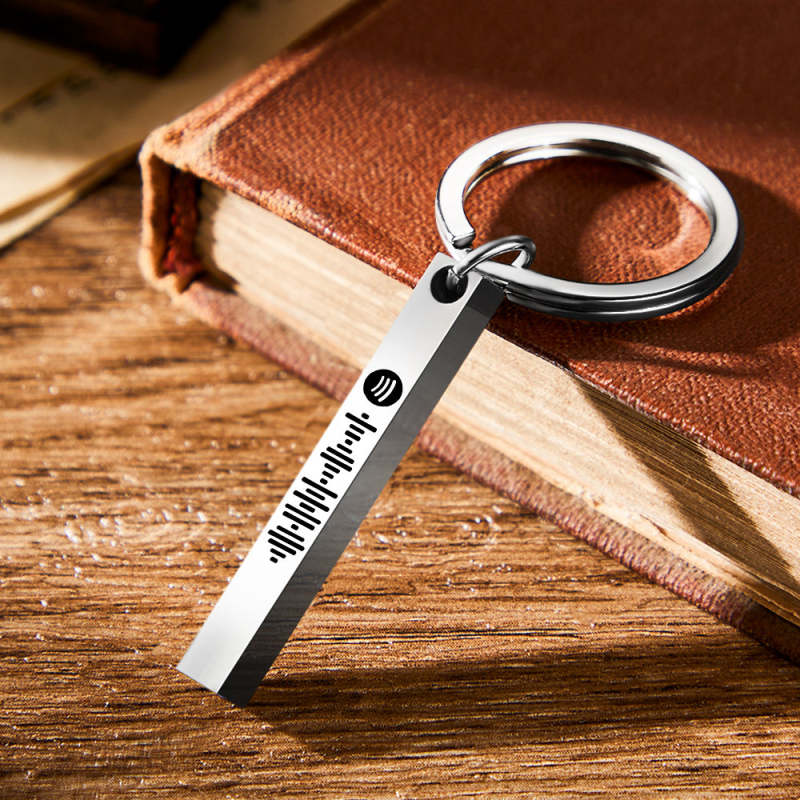 Scannable Spotify Code Keychain Custom 3D Engraved Vertical Bar Keychain Stainless Steel
