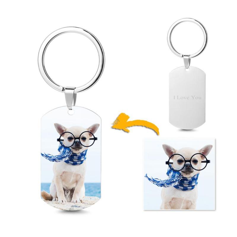 Valentine‘s Gift Photo Tag Key Chain With Engraving Stainless Steel